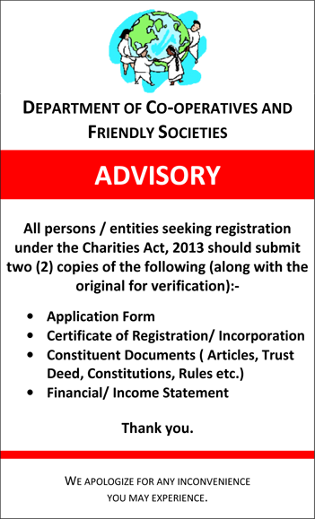 Charities should submit two (2) copies of documents (along with the original for verification) »»